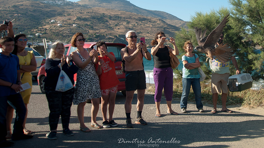 Παρόντες ήταν κάτοικοι και φιλοξενούμενοι της περιοχής, καθώς και τα παιδιά από την κατασκήνωση της Μητροπόλεως στα Τρομάρχια. Έγινε ενημέρωση για το πρόγραμμα LIFE ΑΝΔΡΟΥ, το συγκεκριμένο είδος, και αφού όλοι θαύμασαν από κοντά αυτά τα πανέμορφα πουλιά, απελευθερώθηκαν.